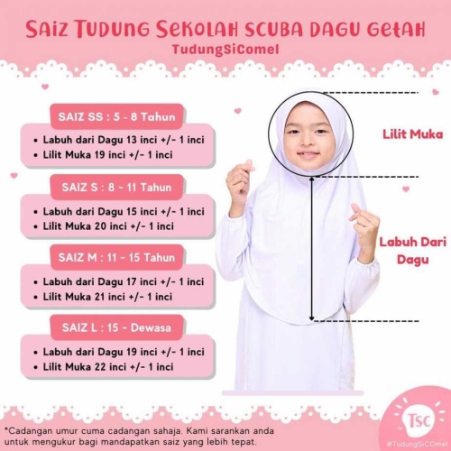 ✔️ Tiada label yang tepat berdasarkan saiz tudung