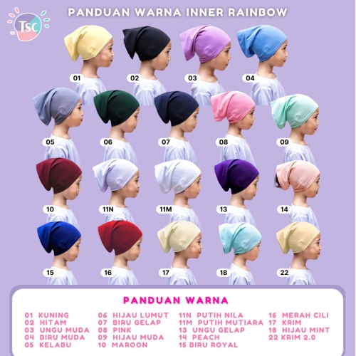 Direka khas untuk kanak-kanak comel berusia antara 2 tahun hingga remaja. Dengan menggunakan material lycra korea lembut, membuat kan si comel memakainya dengan melekap selesa di bahagian kepala.