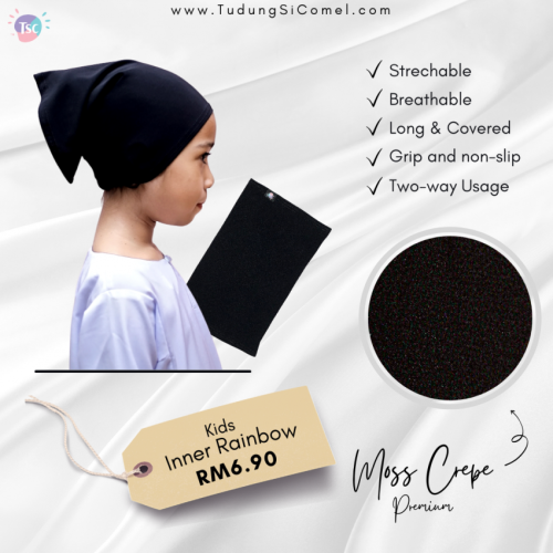 Inner MossCrepe dihasilkan bagi memudahkan kanak-kanak bertudung terutamanya apabila menggayakan tudung yang lembut seperti agar tudung terletak elok (non-slip).