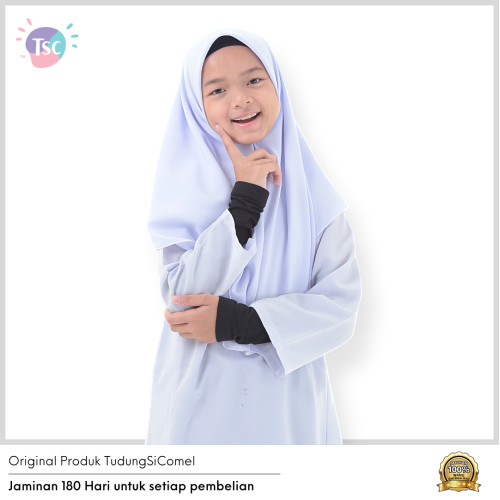 #Size M (BIDANG 45″) Sesuai untuk Si Comel berusia 11 – REMAJA. Labuh dari dagu 16 inci +/- 1 inci Lilit muka 20 inci Labuh Belakang 29 inci +/- 1 inci